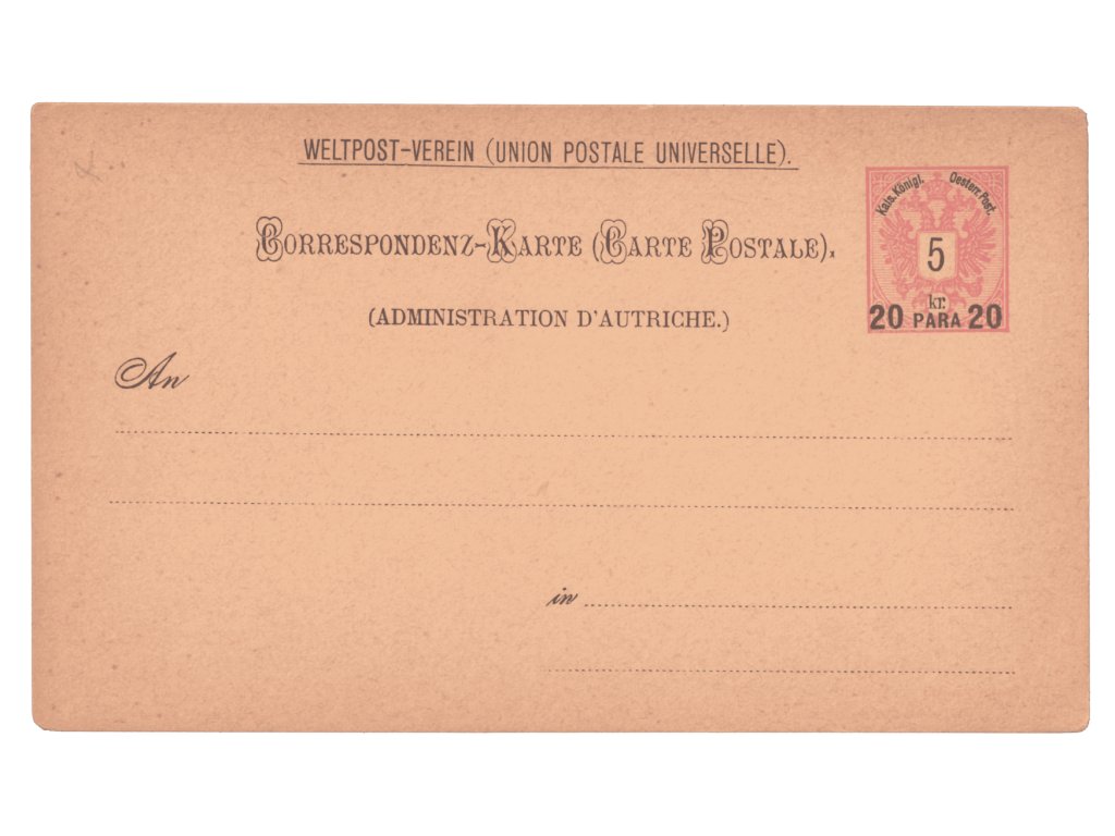 20 para sürşarjlı 5 kreuzer pul baskılı Avusturya posta kartı