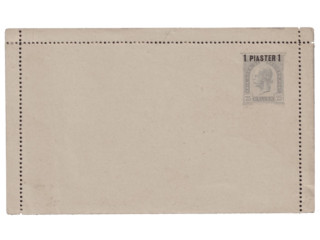 1 piaster sürşarjlı 25 heller pul baskılı Avusturya mektup kartı