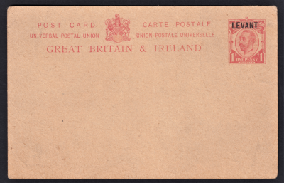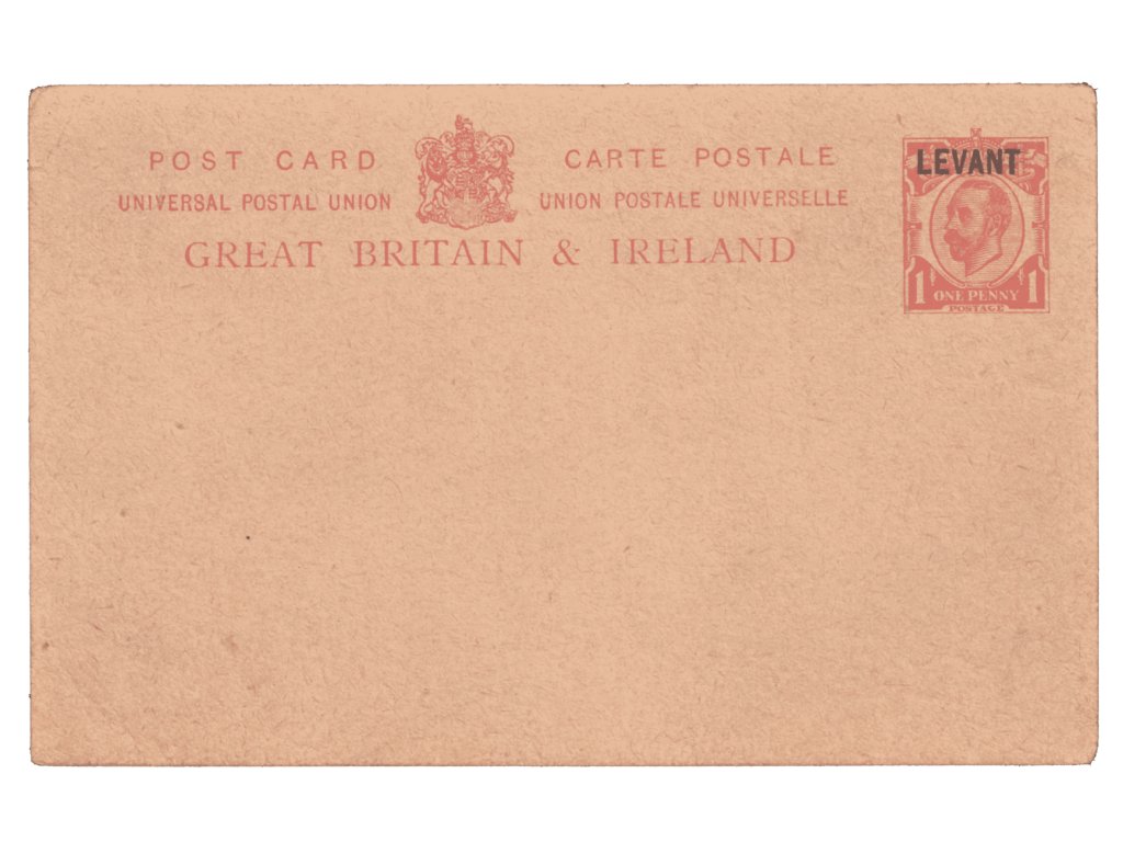 Levant sürşarjlı 1 penny pul baskılı Büyük Britanya posta kartı