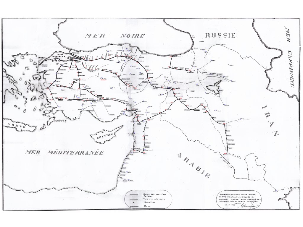Osmanlı İmparatorluğu'nda Posta Teşkilatı 1840 yılında kurulmuş ve hızla gelişmiştir. Taşınan posta malzemesinin kayıtlarının bulunduğu Posta Beyannameleri eşliğinde Posta Tatarı, Sürücü veya Zaptiyeler tarafından at sırtında bir posta merkezinden diğerine götürülen postanın gittiği yere salimen varması için Posta Yolları saptanmıştır. Bu Posta Yollarını Avrupa Türkiye’sinde 3 ana kol, Asya Türkiye’sinde ise 5 ana kol olarak sınıflandırabiliriz. Doğal olarak bu ana kollar ihtiyaç duyuldukça tali yollara da ayrılmıştır.